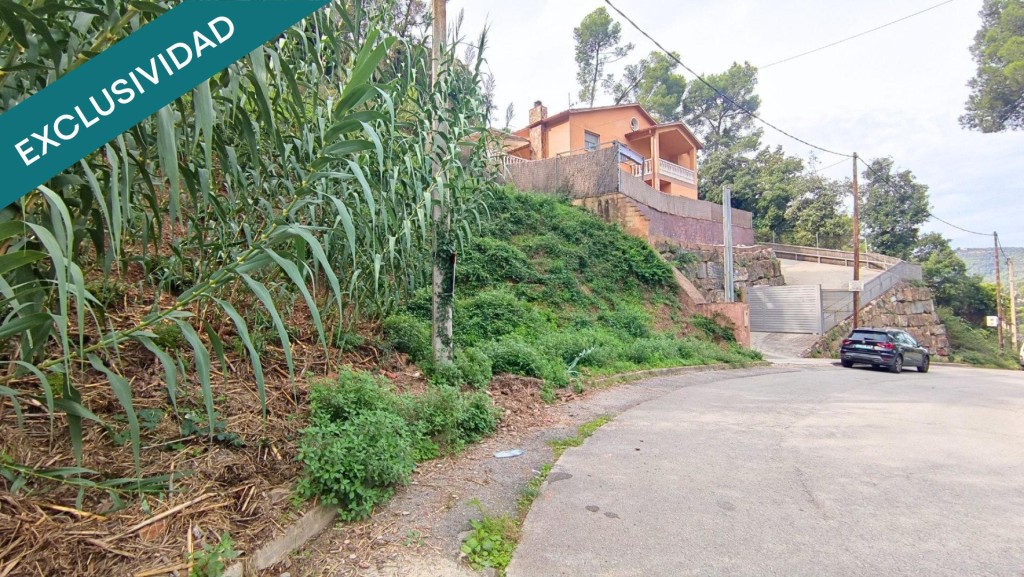 La parcela tiene una pendiente ascendente pronunciada, con vistas panorámicas al Llobregat orientación norte. Hace frente a una parcela donde no se puede edificar, asegurando privacidad y vistas despejadas.