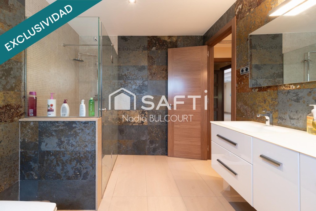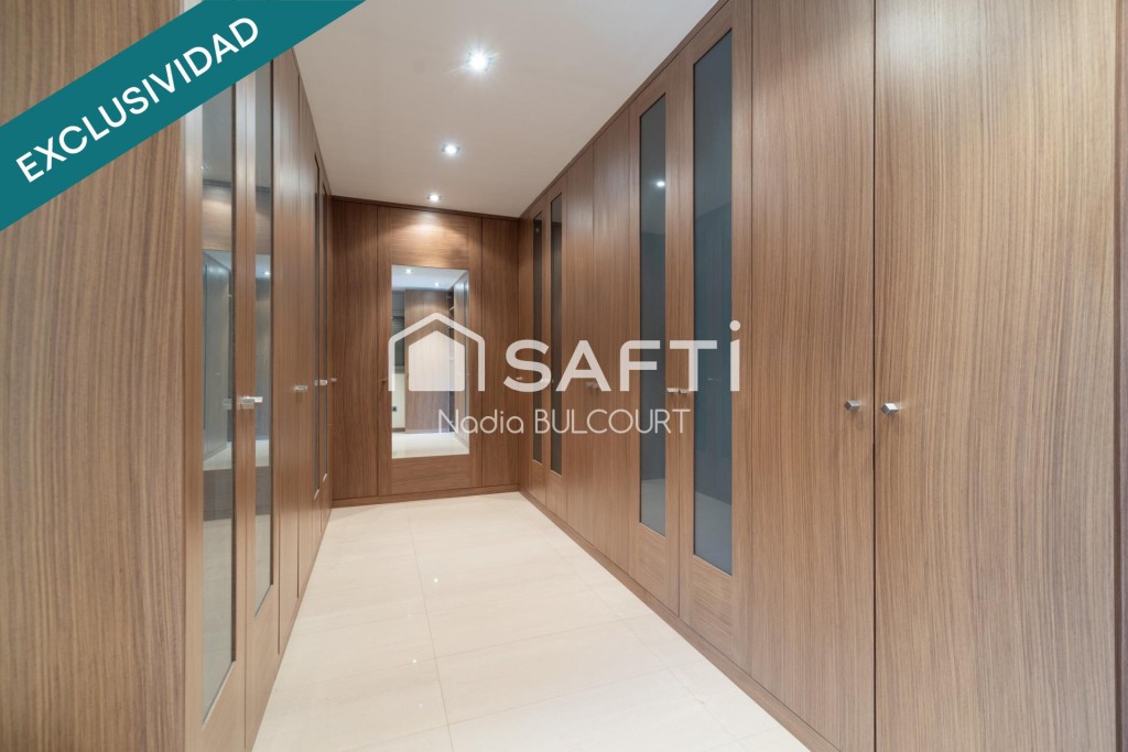 Construida sobre una parcela de 2.275 m², ofrece 968 m² distribuidos en dos plantas con ascensor. Dispone de 5 dormitorios (4 en suite), 6 baños, un luminoso salón con ventanales panorámicos y una moderna cocina equipada.