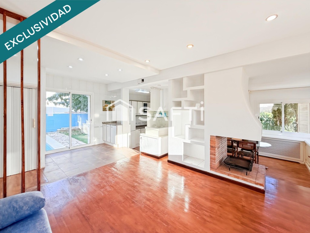 Desde la entrada principal accedemos a salón comedor también con una original chimenea que divide el salón con otra sala para el día a día y que da acceso a la cocina, un espacio cómodo, versátil y acogedor, donde todos los integrantes del hogar puedan relajarse y sentirse a gusto.