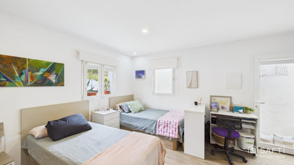 En una de las zonas más prácticas y cotizadas de Ibiza se encuentra esta acogedora vivienda en planta baja, diseñada para ofrecer comodidad, privacidad y una distribución muy funcional. La propiedad dispone de tres amplios dormitorios, cada uno con su propio baño en suite, lo que garantiza independencia y confort tanto para quienes desean vivir durante todo el año como para quienes buscan una segunda residencia donde disfrutar de Ibiza con total tranquilidad. El salón, bien proporcionado, se integra de forma natural con la cocina, creando un ambiente agradable y versátil para el día a día.