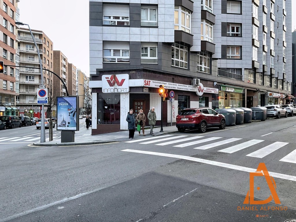 El local hace esquina con la calle Hermanos Felgueroso, lo que le aporta una gran versatilidad y la posibilidad de doble escaparate a dos calles muy transitadas, multiplicando el impacto comercial y las opciones de rotulación y branding.