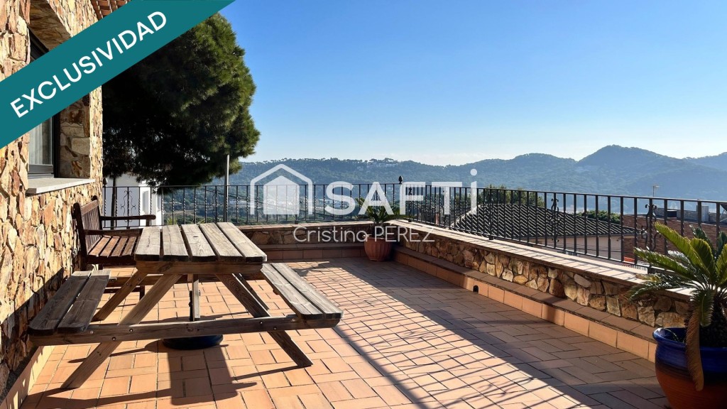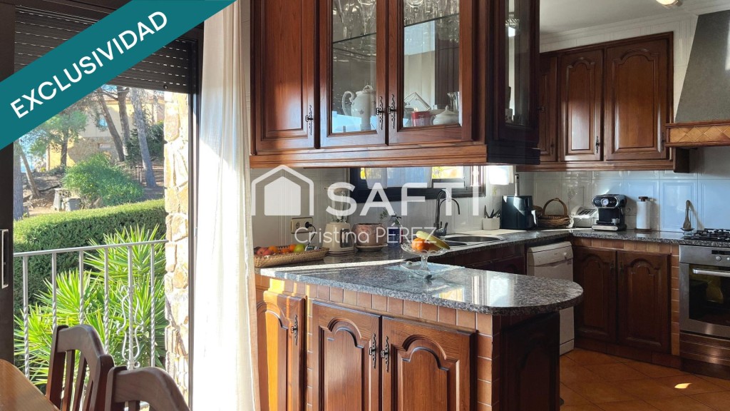 En esta misma planta nos encontramos un amplio y luminoso salón comedor con grandes ventanales y acceso a la terraza des de donde se pueden contemplar las vistas a la piscina, Blanes y el mar. La cocina funcional y equipada tiene salida al jardín.