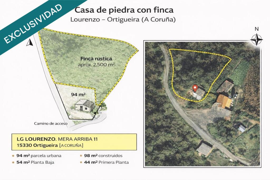 En venta casa tradicional de piedra con amplia finca en Ortigueira (A Coruña, Galicia), ubicada en Lugar Lourenzo , parroquia de Santa María de Mera, Arriba 11, municipio de Ortigueira (A Coruña), Galicia.