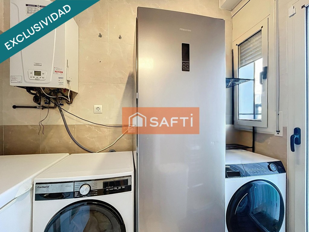En la planta inferior, bajando las escaleras, se ubica un aseo de cortesía, una cocina independiente, una pequeña habitación polivalente ideal como despacho o despensa, lavadero independiente, y un amplio salón-comedor con chimenea
