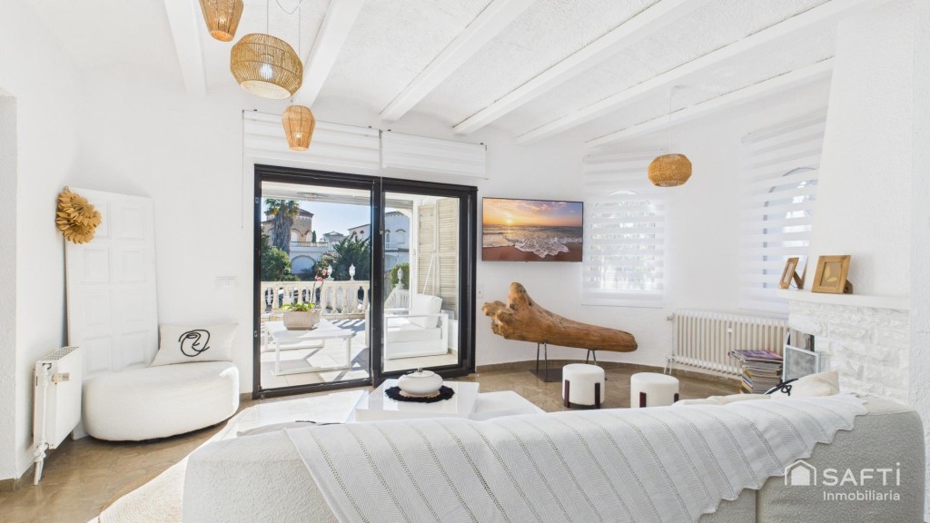 Casa de una sola planta con piscina y amarre en canal ancho, situada sobre una amplia parcela de 1.079 m² con excelente orientación sur. Ubicada en pleno centro de la marina, disfruta de un entorno privilegiado y de un amarre privado de 25 metros, ideal para los amantes de la navegación, a tan solo 10 minutos de la salida al mar en barco.