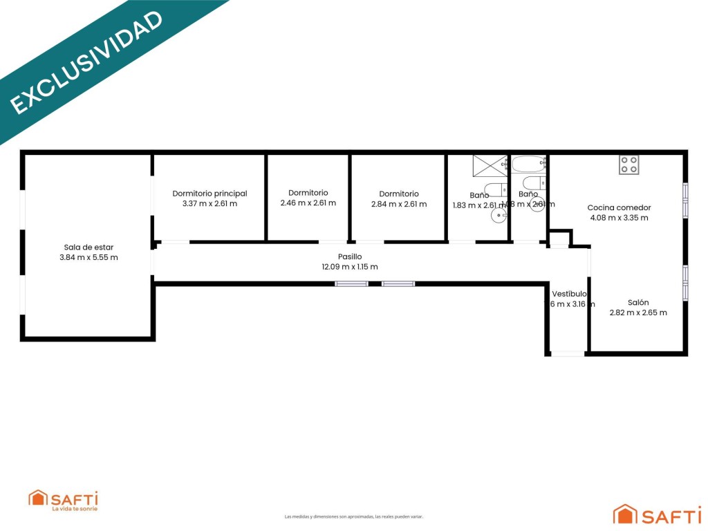 3 dormitorios | 2 baños