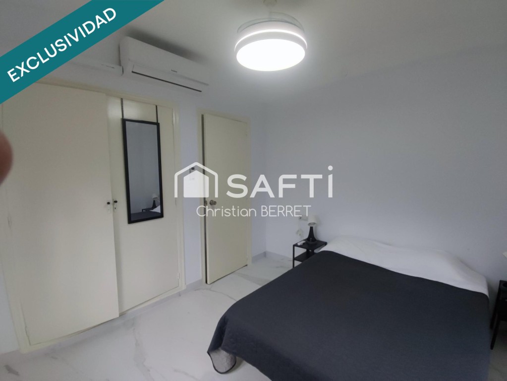 Terraza porcheada, ideal para mesa exterior o salón de verano, con acceso directo a la zona de piscinas