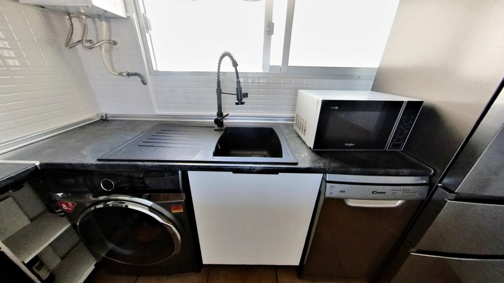La comunidad ofrece piscina y amplias zonas ajardinadas, además de una plaza de aparcamiento en superficie incluida en el precio. El entorno es tranquilo y está a pocos minutos de la playa, con comercios, colegios, restaurantes y transporte público (BUS y TRAM) muy cerca, lo que facilita la vida diaria.