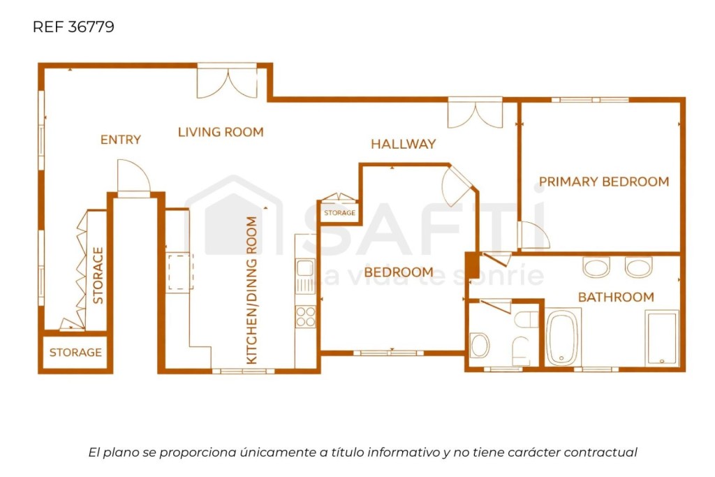 En la planta baja, el primer apartamento consta de cocina, un amplio salón, dos dormitorios y un baño con ducha, perfecto para recibir invitados o como vivienda de alquiler.