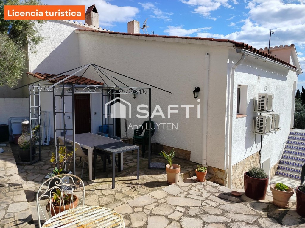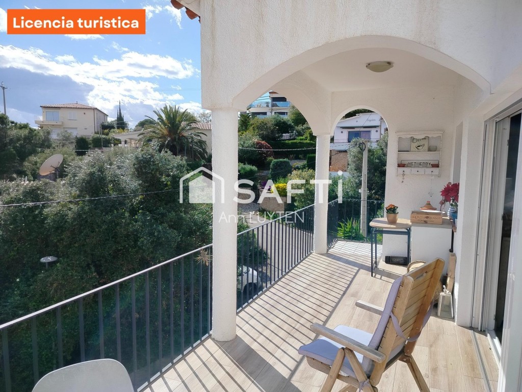 Casa adosada con licencia turística situada en la tranquila urbanización de Mas Fumats, a solo 3 km de la playa, con bonitas vistas al mar. Desde el garaje, una escalera exterior conduce a la planta baja, que dispone de zona de entrada, un dormitorio con baño en suite y un aseo de cortesía. En la parte frontal se encuentra una terraza con vistas.