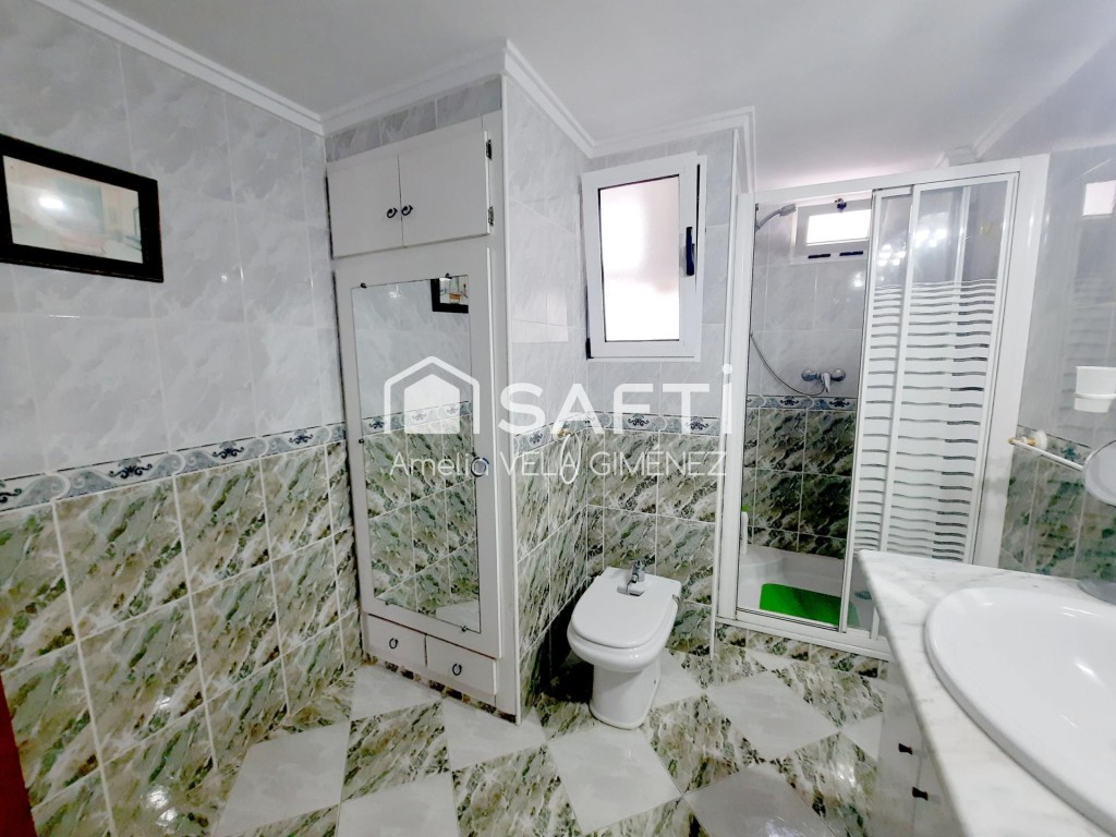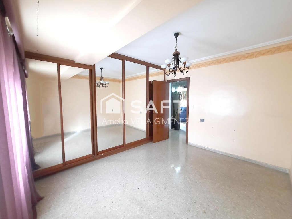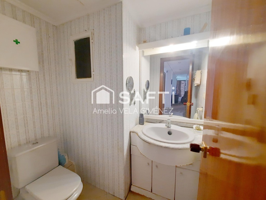 Su espacioso hall da paso a la primera estancia utilizada de salón con unas vistas despejadas a la plaza, al amplio y luminoso salón-comedor con ventana y balconera de salida a un espacioso y soleado balcón desde el que disfrutar de unas impresionantes vistas, y a la habitación principal con un enorme armario empotrado. El pasillo, con un pequeño trastero ideal para almacenar enseres, distribuye al resto de estancias: tres habitaciones, de las cuales dos han sido unidas para crean un amplio salón con estanterías repletas de lectura, rincón perfecto para las tardes de invierno, y una de ellas con salida un segundo balcón. Sorprende la espaciosa cocina con barra y numerosas armariadas, su lavadero y una gran despensa que hará que nunca falte espacio de almacenaje. Un enorme baño completo con plato de ducha y un aseo culminar las estancias de este monumental piso de los que ya no se construyen a día de hoy.