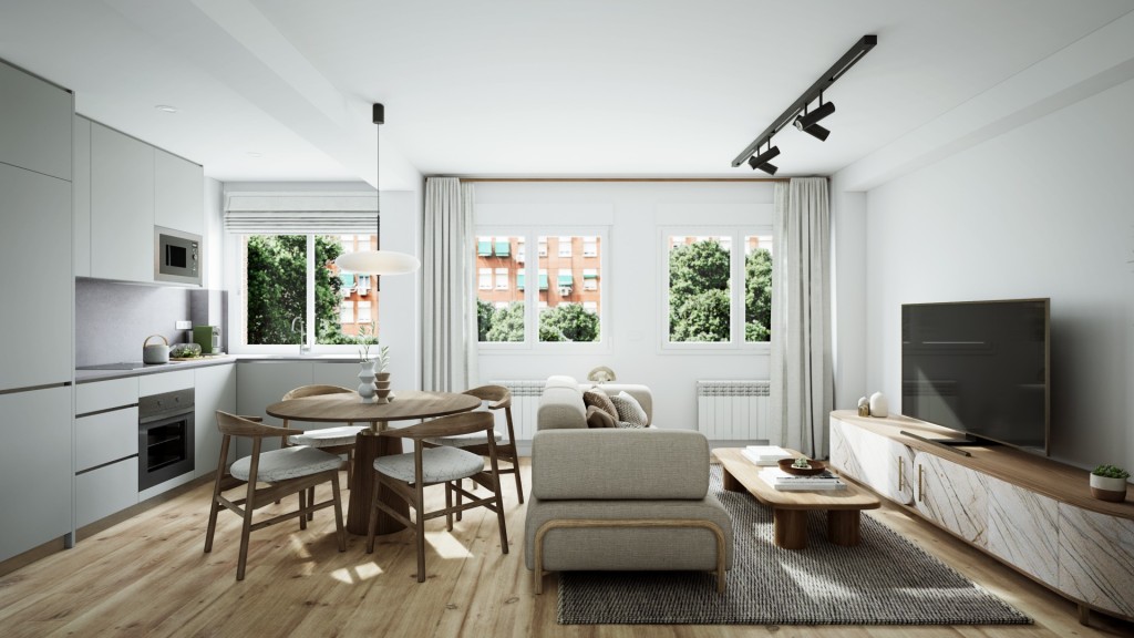 La propiedad está siendo objeto de una reforma integral cuidada al detalle. Cuenta con pre-instalación de aire acondicionado en todas las estancias, suelos de tarima de alta resistencia, acabados porcelánicos en el baño y paredes con terminación lisa. Las carpinterías exteriores cumplen con los más altos estándares de eficiencia energética, y tanto la instalación eléctrica como la de fontanería han sido renovadas por completo. La cocina se entrega totalmente equipada con electrodomésticos integrados.
