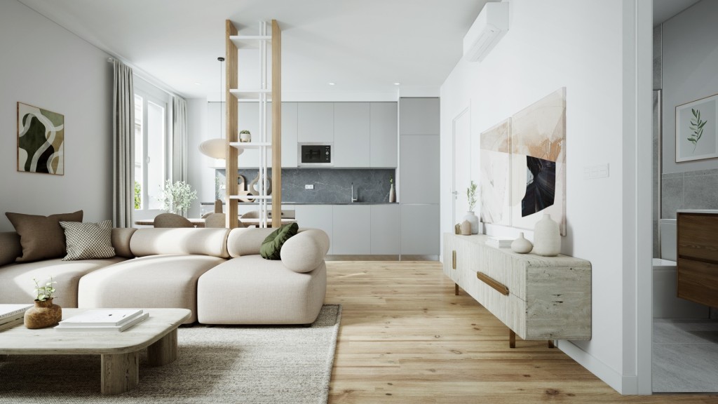 La propiedad está siendo objeto de una reforma integral cuidada al detalle. Cuenta con pre-instalación de aire acondicionado en todas las estancias, suelos de tarima de alta resistencia, acabados porcelánicos en el baño y paredes con terminación lisa. Las carpinterías exteriores cumplen con los más altos estándares de eficiencia energética, y tanto la instalación eléctrica como la de fontanería han sido renovadas por completo. La cocina se entrega totalmente equipada con electrodomésticos integrados en el mobiliario.