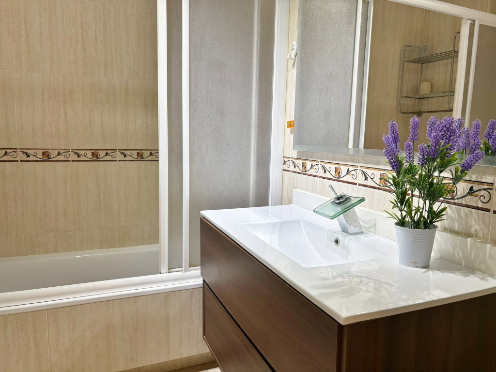 El baño es completo, con bañera, ideal para darte un baño relajante después de un día largo y desconectar.