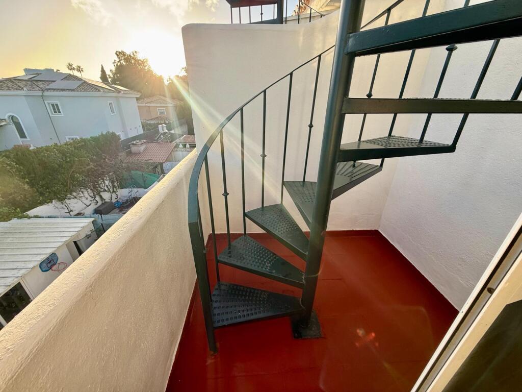 Propiedad gestionada en exclusiva por Rivera Estates Ático dúplex con 86 m2 interiores y tres terrazas – El Coto / Hornillo, Mijas CostaÁtico dúplex situado en segunda planta (sin ascensor) dentro de una urbanización residencial tranquila, en la zona de El Coto – Hornillo, Mijas Costa. Una vivienda con 86 m2 interiores reales y excelentes espacios exteriores, ideal para quienes buscan amplitud, tranquilidad y buena conexión con la naturaleza, sin alejarse de los servicios.Vivienda – Superficie interiorLa vivienda dispone de 86 m2 interiores, distribuidos en:•Salón-comedor amplio y luminoso, con chimenea y suelo de mármol•Cocina semiabierta, separada del salón mediante barra americana y murete, manteniendo independencia entre estancias•Dos baños completos, uno con bañera y otro con ducha•Buena entrada de luz natural y distribución cómodaDesde el salón se accede a la terraza principal, que originalmente era abierta y que el anterior propietario cerró con acristalamiento y techo de madera, permitiendo su uso durante todo el año. Este cerramiento puede retirarse si se desea recuperar la terraza abierta original.El dormitorio principal cuenta con baño en suite y salida directa a una segunda terraza, igualmente cerrada con cristal y techo de madera, también originalmente abierta, con posibilidad de adaptarla según gustos.Zonas exteriores – 3 terrazasLa vivienda dispone de tres terrazas, con una superficie exterior total aproximada de 68 m2:•Terraza principal (≈ 8 m2), accesible desde el salón•Terraza trasera (≈ 10 m2), accesible desde el dormitorio principal•Solárium privado en planta superior (≈ 50 m2), de uso exclusivo, con:•Vistas abiertas a la Sierra de Mijas•Vistas al mar•Barbacoa de obra•Trastero de obraEl solárium no computa como superficie interior de vivienda, pero aporta un gran valor añadido por amplitud, privacidad y posibilidades de uso.Todas las terrazas se han impermeabilizado recientemente Urbanización•Piscina comunitaria•Recinto comunitario con zonas verdes y zonas ajardinadas, especialmente en el área de la piscina•Parking comunitario•Entorno cuidado y residencialInformación adicional•La piscina comunitaria se encuentra actualmente en proceso de reparación•Está prevista la emisión de una derrama o cuota extraordinaria, pendiente de concretar por la comunidadUbicación•Zona residencial tranquila•Supermercados y servicios a pocos minutos (Lidl a unos 5 minutos)•Playa a aproximadamente 10 minutos en cocheUna propiedad con 86 m2 interiores, amplias zonas exteriores y mucho potencial, ideal para quienes valoran terrazas, tranquilidad y cercanía a servicios.