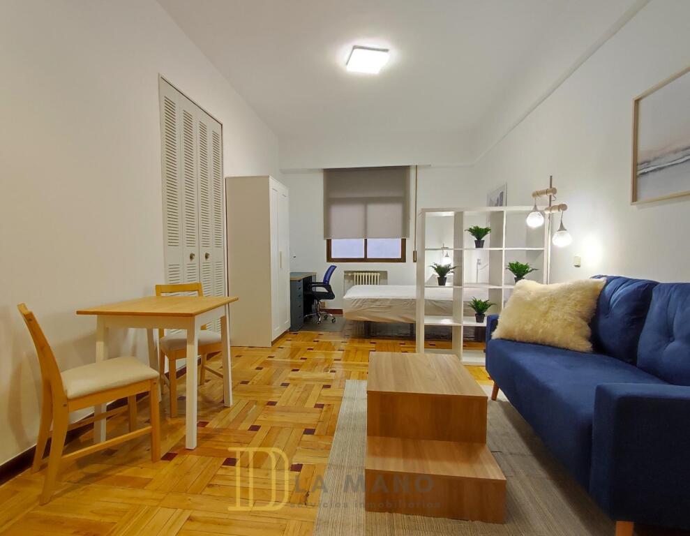 ¡¡IDEAL ESTUDIANTES INTERNACIONALES!!TRANQUILO Y COQUETO ESTUDIO AMUEBLADO CON CALEFACCIÓN CENTRAL INCLUIDA YA DISPONIBLE PARA ALQUILER TEMPORAL CON ENTRADA DESDE 1 DE MARZOInmobiliaria DE LA MANO alquila este cómodo estudio situado en uno de los mejores barrios de Madrid, Ríos Rosas. Además, se sitúa en la estratégica Plaza de san Juan de la Cruz, junto al Paseo de la Castellana, en un entorno tranquilo y seguro, a la par que plenamente consolidado y a sólo un paseo del nodo de comunicaciones que supone Nuevos Ministerios. Si nos dirigimos al sur y al oeste nos adentraremos en el castizo distrito Chamberí, con sus bares y terrazas, su comercio de proximidad y sus plazas y parques. Si nos dirigimos al este, nos adentraremos en el exclusivo distrito Salamanca, con grandes avenidas comerciales y Escuelas internacionales de negocios de gran prestigio como el IE.La vivienda se ubica en un fabuloso edificio totalmente actualizado, con acceso para personas con movilidad reducida, dos ascensores, portero físico y automático y calefacción central. Y el estudio en sí es funcionalidad pura. 30 metros cuadrados aprovechados al máximo para gozar de un espacio de descanso y despacho, otro ambiente de ocio con el sofá y la mesa comedor, la zona de cocina totalmente equipada y el baño completo ubicado en la entrada. El piso se encuentra en muy buen estado con puerta blindada, suelos de parqué, ventanas de aluminio y paredes lisas. Se alquila amueblado, listo para entrar a vivir.Se requiere un perfil responsable y de demostrada solvencia. Se alquila por temporadas, preferiblemente anuales. Son necesarias dos mensualidades de fianza y los honorarios de agencia son compartidos: media mensualidad + IVA la asume el propietario y la otra media + IVA el inquilino. Los gastos de comunidad y la calefacción están incluidos en el precio. ¡LLÁMANOS PARA VISITARLO!