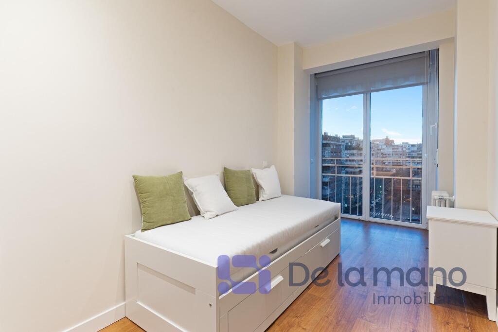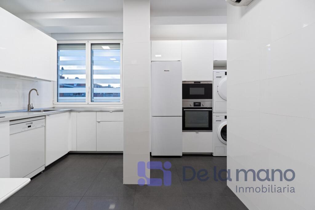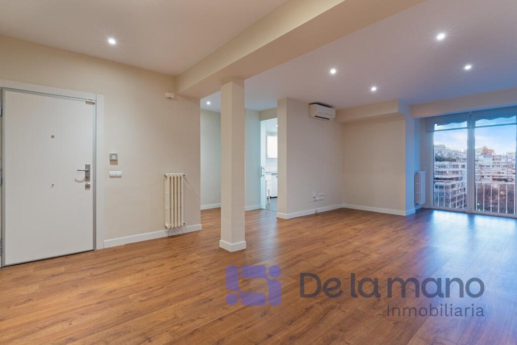 ESPECTACULAR PISO REFORMADO TOTALMENTE EXTERIOR EN EL MEJOR BARRIO DE MADRID¡SIN HONORARIOS DE AGENCIA PARA EL INQUILINO Y CON CALEFACCIÓN INCLUIDA!Inmobiliaria DE LA MANO tiene el gusto de presentarte esta vivienda completamente exterior, con orientación oeste y unas vistas despejadas del entorno del Santiago Bernabéu. Al situarse en una novena altura permite disfrutar de bellos atardeceres y se encuentra aislada del ruido ambiente de la calle. Ha sido recientemente reformada y cuenta con una distribución optimizada para ser vivida. El enorme salón comedor unido a la zona de recibidor es un lienzo en blanco para dibujar en el la zona social que siempre has soñado, además de disponer de un amplísimo armario empotrado. A través de una puerta acristalada corredera accedemos a la cocina, amplia, llena de luz natural y completamente equipada, incluyendo lavadora y secadora.La zona privada está compuesta de tres dormitorios y dos cuartos de baño, todos ellos con armarios empotrados. Dos dormitorios individuales y la suite principal. Todas las estancias, salvo los baños son exteriores y varias de ellas cuentan con ventanales de suelo a techo, lo que hace que la luz y la sensación de espacio sean la norma. Para los meses veraniegos dispone de aire acondicionado por splits, toldos exteriores y persianas eléctricas.La vivienda se alquila con la cocina equipada y el resto del piso sin amueblar, aunque las camas que se observan en las imágenes se pueden quedar si lo desea el inquilino. Sobra decir que el barrio es uno de los más seguros y atractivos para cualquier madrileño, con comercio de proximidad de todo tipo en las inmediaciones y un ambiente residencial consolidado de décadas. La finca en la que se ubica, ha sido recientemente actualizada y cuenta con accesos para personas con movilidad reducida, portero físico y videoportero, varios ascensores y montacargas.Buscamos un perfil responsable y solvente que quiera hacer de esta maravillosa vivienda el hogar de los suyos los próximos años. Los gastos de comunidad, IBI y honorarios de agencia están incluidos. La calefacción central también. ¿Ya te has decidido? Llámanos para verla.