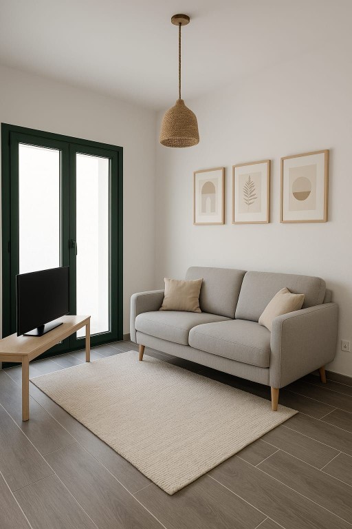 La entrada se abre a una acogedora zona open space cocina/salón, moderna y funcional, perfecta para momentos de relax o convivencia.