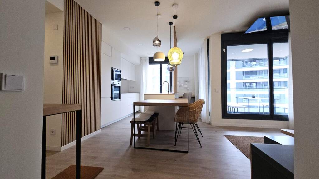 *** 4 VIVIENDAS DE CERTIFICACIÓN DOBLE "A" ***___________________________________________________________________________________________________Estancia residencia frente al mar: obra nueva con piscina comunitaria, plaza de parking y trastero en BadalonaPrecio del alquiler de cada vivienda: 2.250€/mes* precio libre por tratarse de obra nueva, acorde a la normativa vigente 11/2025 aprobada el pasado 29 de dic´25.4 x Viviendas con vistas al mar, ubicadas en finca moderna con plaza de aparcamiento incluida, piscina comunitaria y trastero.Se ofrece como alquiler temporal para un máx. de 11 meses o como alquiler de larga duración para un máx. de 5 años. Amplios y contemporáneos apartamentos situados a escasos metros del Port de Badalona y frente al fachada marítima y playa. Viviendas nuevas sin estrenar, de estilo contemporáneo y muy luminosos.La zona de día dispone de un salón-comedor espacioso y luminoso, equipado con televisión y salida a balcón exterior con mobiliario, ideal para disfrutar de las vistas al mar. La cocina, abierta y completamente equipada, cuenta con isla central o barra americana, zona de comedor y electrodomésticos de alta gama: horno, frigorífico, lavavajillas, microondas, cafetera, tostadora y menaje completo, además de una zona de trabajo/escritorio.La zona de noche se distribuye en dos dormitorios: una suite como dormitorio principal con cama doble, televisión, 2 armarios empotrados y baño con ducha; segundo dormitorio individual con literas o cama individual, escritorio y armarios. Las viviendas disponen además de un segundo baño completo con ducha.Los inmuebles estan dotados de tecnología aerotérmica para el sistema de calefacción y refrigeración por conducto, así como, agua caliente sanitaria y wifi de alta velocidad. El alquiler incluye piscina comunitaria, trastero y plaza de aparcamiento en el mismo edificio.Excelente ubicación, enfrente del mar, y colindante al puerto náutico, a escasos metros de la Playa del Coco y el fabuloso paseo marítimo. Centro comercial Màgic (comercios de grandes marcas, cine y club de pádel), Centro comercial Alcampo Sant Adrià i Diagonal Mar a pocos minutos. Buenas comunicaciones mediante: Metro Gorg L2 y L10NTranvíaTram T5 Gorg (Badalona) → 22@ → GlòriesTram T6 Gorg (Badalona) → Estación de tren de Sant Adrià → Besòs → GlòriesAutobúsB20 Badalona – Barcelona (zona Glòries / centre)B25 → Badalona – Barcelona (Eixample / Ronda Sant Pere)B29 → Badalona – Barcelona (conexión con áreas del norte de la ciudad)N2 → Badalona – Barcelona (servicio nocturno continuo)Advertencia: El estudio de solvencia económica del candidato/a se lleva a cabo por una aseguradora, y la documentación solicitada y las condiciones podrán variar según la situación financiera de cada candidato/a.