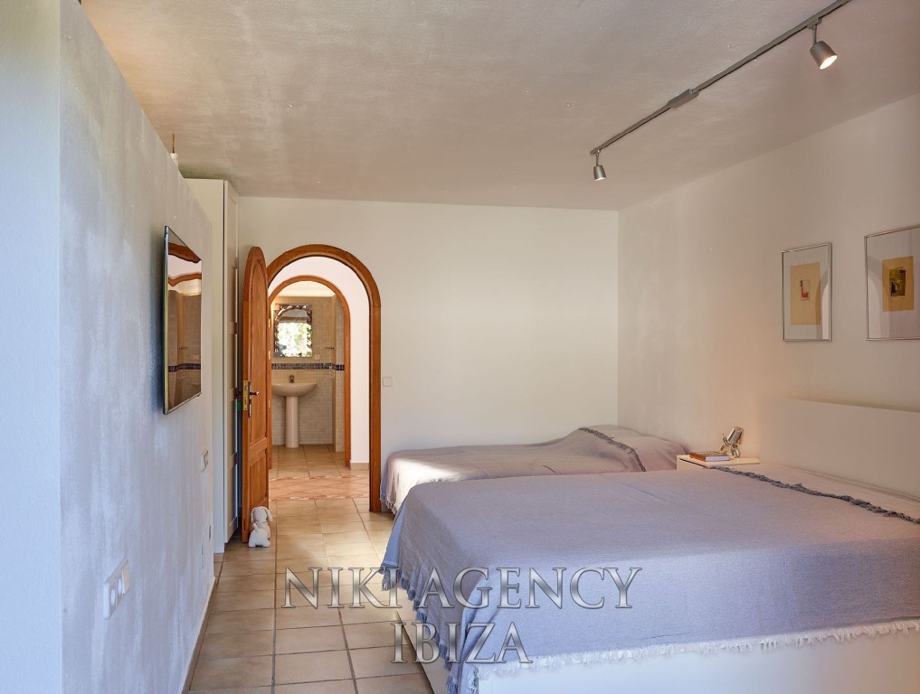 El exterior ofrece un cuidado jardín mediterráneo, amplias terrazas, zona de barbacoa y una atractiva piscina privada con vistas abiertas al campo. Un espacio perfecto para disfrutar del clima privilegiado de Ibiza.