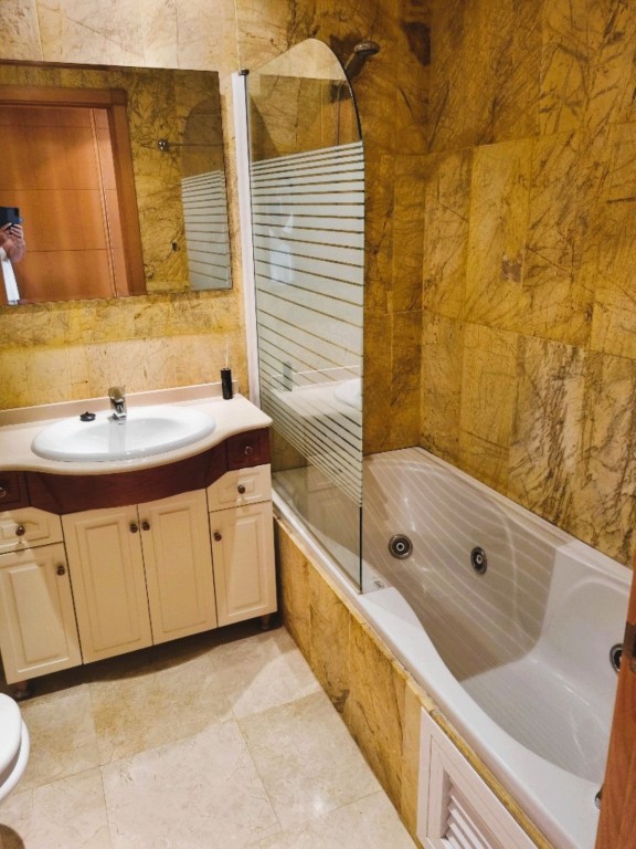 El apartamento dispone de dos dormitorios de buenas dimensiones, ambos con armarios empotrados. El dormitorio principal cuenta con baño completo en suite, mientras que un segundo baño moderno con ducha da servicio al resto de la vivienda.