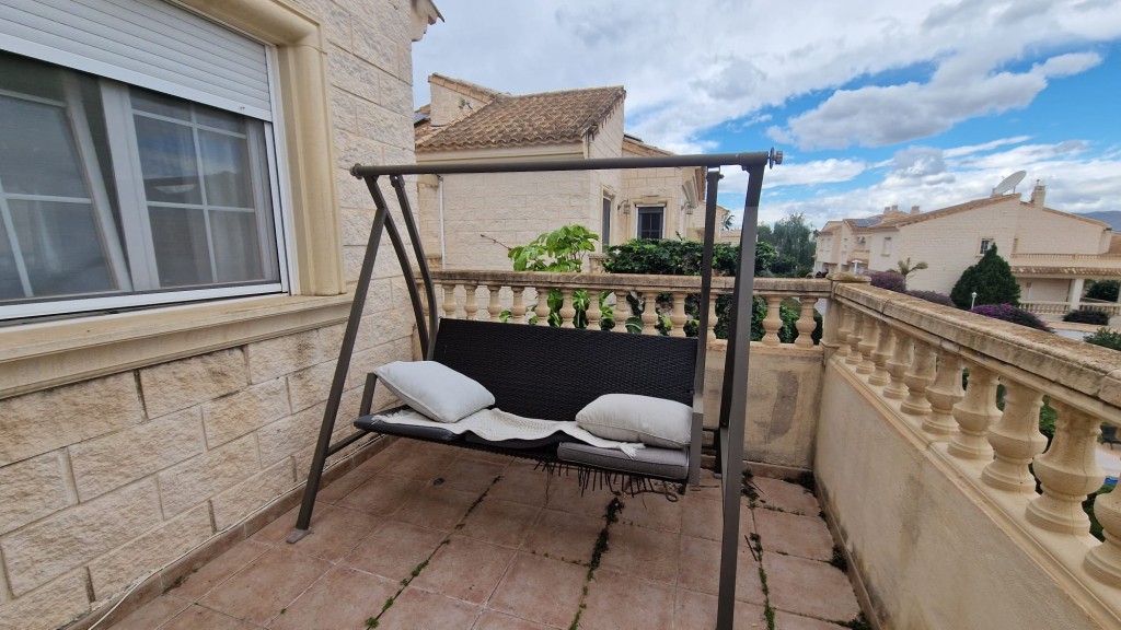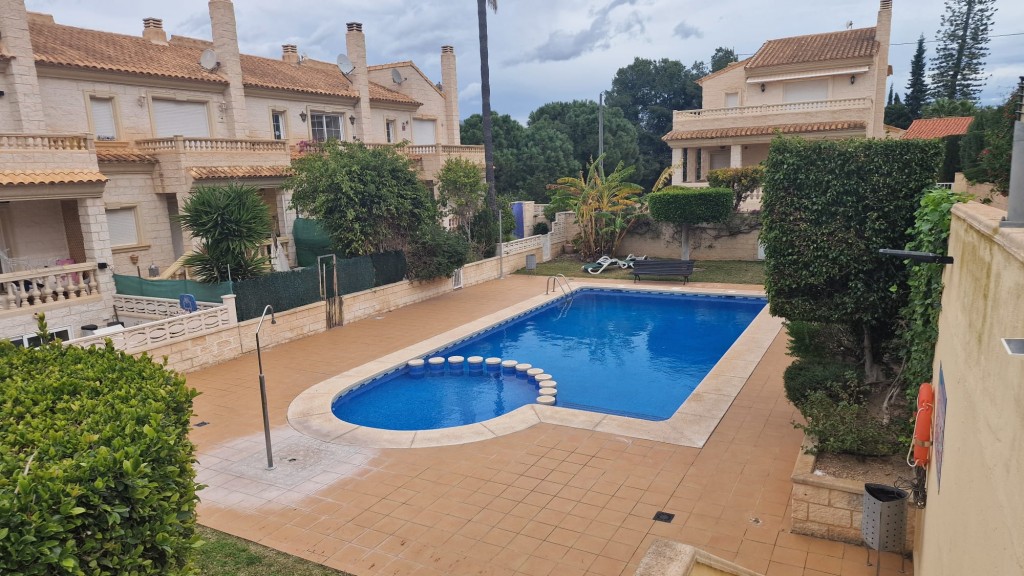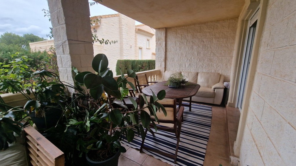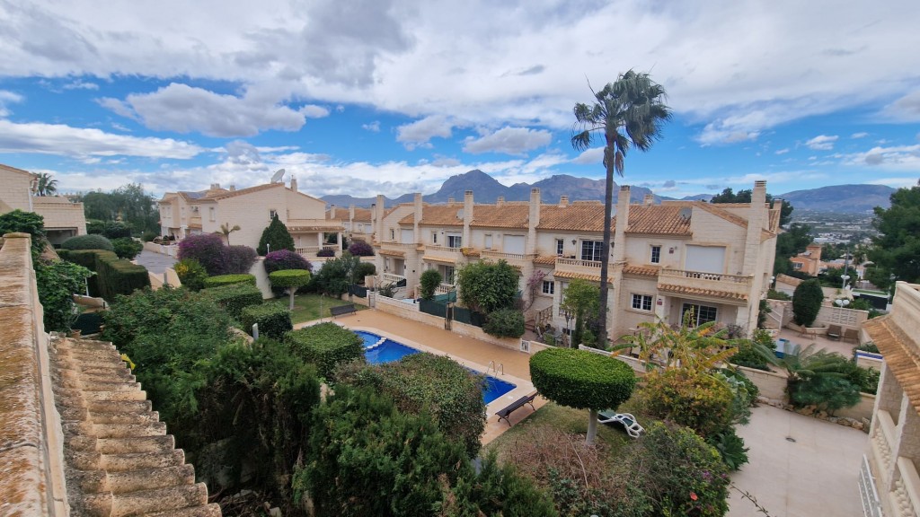 La joya de la comunidad es su piscina de diseño, rodeada de abundante vegetación, palmeras y áreas de descanso, ideal para disfrutar del sol con total comodidad y con las montañas como telón de fondo. La vivienda, además, cuenta con su propio jardín privado y una amplia terraza cubierta, perfecta para mantener tu independencia mientras disfrutas de unas zonas comunes de primer nivel.