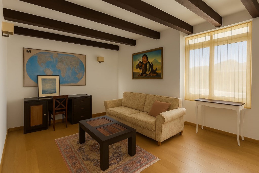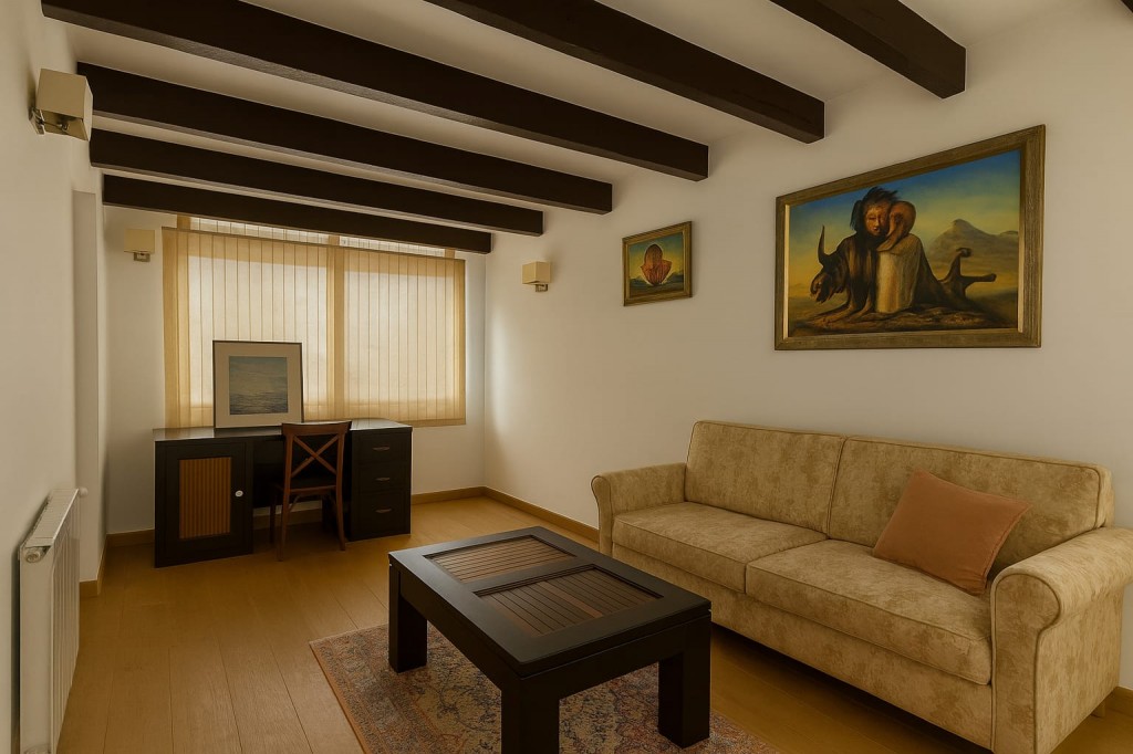 En su interior, la casa ofrece un diseño acogedor con detalles de calidad como las vigas de madera vistas y estancias muy luminosas. Con 4 dormitorios, un sótano polivalente (ideal para gimnasio o biblioteca) y varias terrazas, es el hogar perfecto para una familia que busca la seguridad de una comunidad exclusiva sin renunciar al espacio y la privacidad.