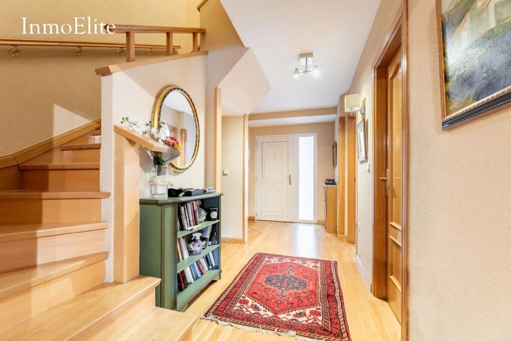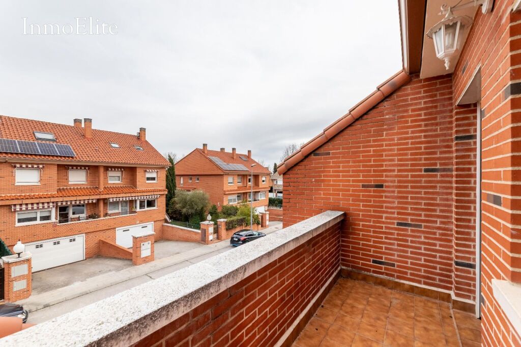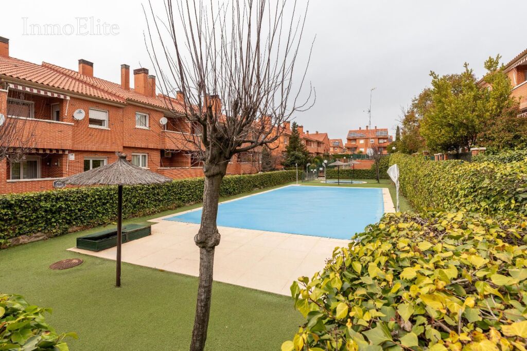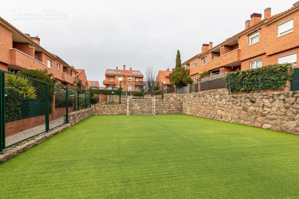 ESTUPENDO CHALET ADOSADO PARA ENTRAR A VIVIR, en la exclusiva zona Club de Golf, con 273 m² construidos y 265 m² útiles. Distribuido en 3 alturas, ofrece 4 habitaciones y 5 baños, pensados para comodidad y funcionalidad diaria. La vivienda cuenta con buhardilla con chimenea, trastero y lavadero, además de 2 plazas de garaje y puerta blindada para mayor seguridad.Sus 40 m² de jardín permiten disfrutar del exterior sin renunciar a la privacidad, mientras las zonas comunes del complejo brindan piscina, áreas verdes y pistas multiusos para actividades en familia. La vivienda se beneficia de calefacción de gas natural, armarios empotrados y cocina amueblada, todo pensado para un estilo de vida práctico y confortable. En su interior destacan el suelo de madera y las baldosas, con una distribución que facilita la circulación entre estancias.La planta baja ofrece una distribución eficiente con acceso directo a las áreas exteriores, creando un flujo natural entre la cocina, el comedor y el salón. En la primera planta se ubican las habitaciones, entre ellas la principal con vestidor o armarios empotrados y vistas tranquilas, junto a baños de excelente estado y diseño funcional. La buhardilla añade una zona de uso versátil, ideal como despacho, sala de juego o asueto, complementando una vivienda pensada para crecer contigo.InmoElite Propiedades ofrece esta casa con conserje y servicios comunitarios que elevan la comodidad diaria. Incluye lavadero y trastero para almacenamiento adicional, reforzando la practicidad de su uso familiar. La piscina y las zonas comunes suman valor al día a día, mientras las zonas verdes y el entorno cercano a servicios hacen atractiva la inversión a largo plazo. Este chalet está preparado para visitas y pronta entrega, con un enfoque claro en calidad de construcción, distribución pensada y acabados de alta gama.Contacto directo para coordinar visita y aclarar dudas. Esta oportunidad combina la solidez de una ubicación consolidada, la amplitud de sus 273 m² construidos y las ventajas de un entorno de club con el confort de un hogar contemporáneo. Si buscas una vivienda en Las Rozas con buena conectividad, servicios y un conjunto residencial completo, esta opción merece tu atención. InmoElite Propiedades acompaña todo el proceso para facilitar tu decisión y garantizar una experiencia de compra clara y segura.
