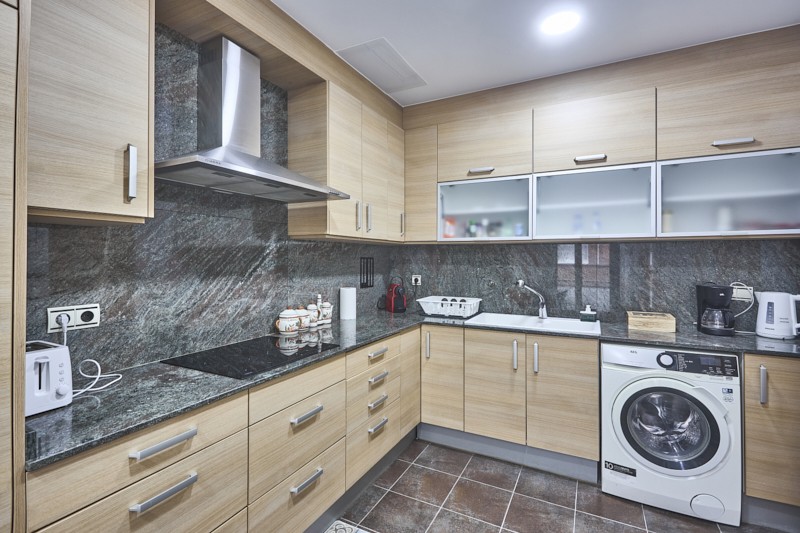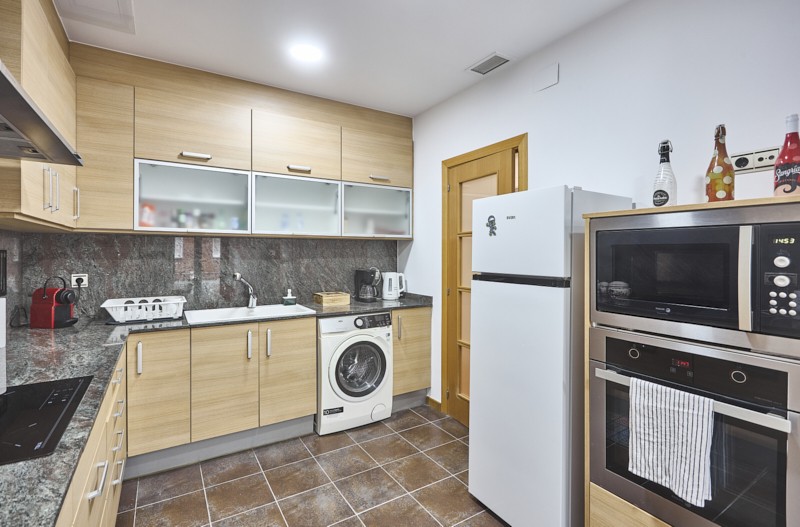 La cocina office, independiente y totalmente equipada, ofrece una dimensión funcional poco habitual, pensada para un uso familiar intensivo y para quienes priorizan comodidad y orden en el día a día.