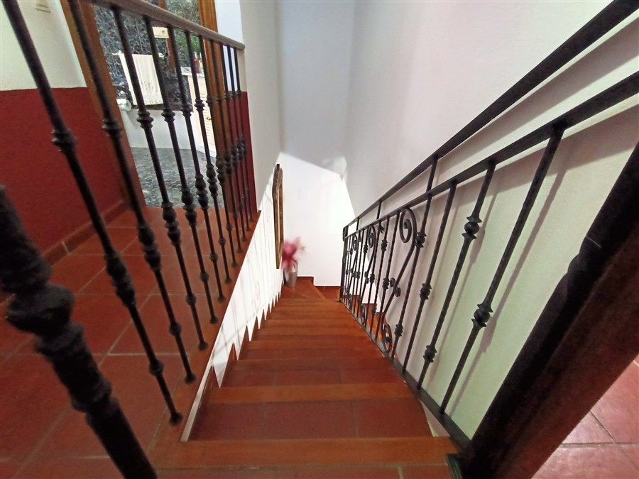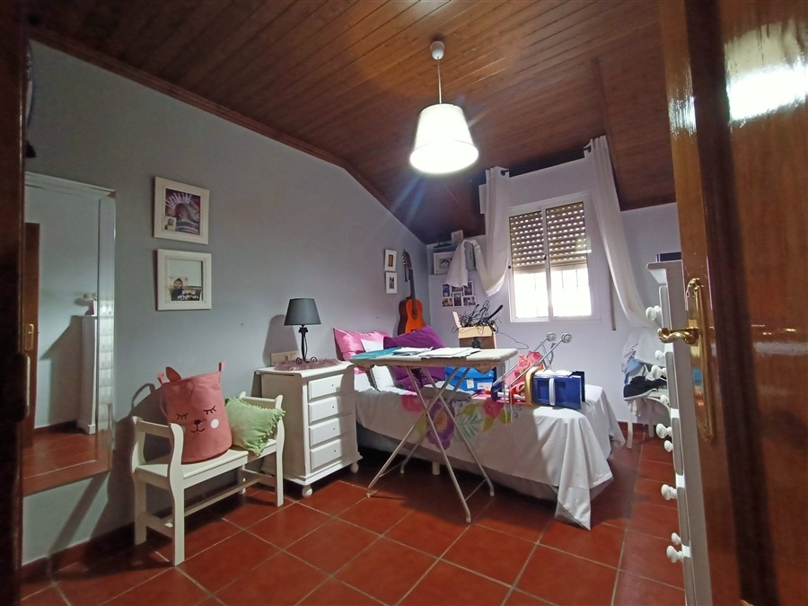 La planta alta se compone de cuatro dormitorios de buen tamaño, el principal con balcón y aire acondicionado con bomba de frío/calor. Dos de los dormitorios cuentan con armarios empotrados forrados en madera, lo que aporta un encantador aspecto rústico y muy personal.