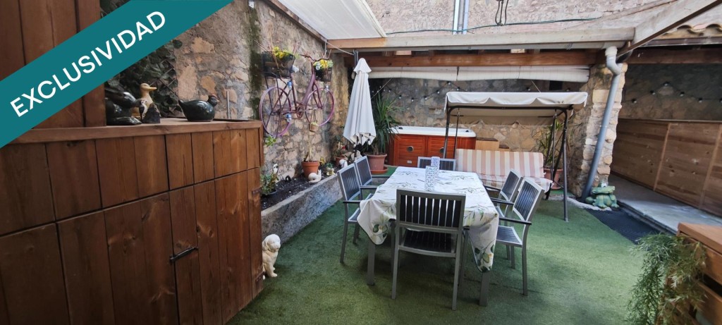 Preciosa casa adosada, de 2 plantas y desván diáfano accesible desde escalera plegable; consta de recibidor, 2 cocinas (una en cada planta), 3 lavabos (1 en planta baja, 2 en el piso de arriba), 1 gran terraza chill-out con piscina y jacuzzi, mesa terraza, escalera de caracol a segundo piso y trastero muy grande con altillo y aparcamiento de 2 plazas. En la segunda planta, accesible también desde el gran recibidor, accedemos por escaleras a las 3 habitaciones dobles y otra habitación simple con despacho incluido. Otras 2 habitaciones se acceden por rellano con lavabo, el cual da acceso al altillo buhardilla diáfana, preparado para hacer más habitaciones o salas-despachos o zonas de juego. La casa se ubica en el centro del pueblo, cerca del Ayuntamiento y servicios/colegios/polideportivo/piscina municipal.