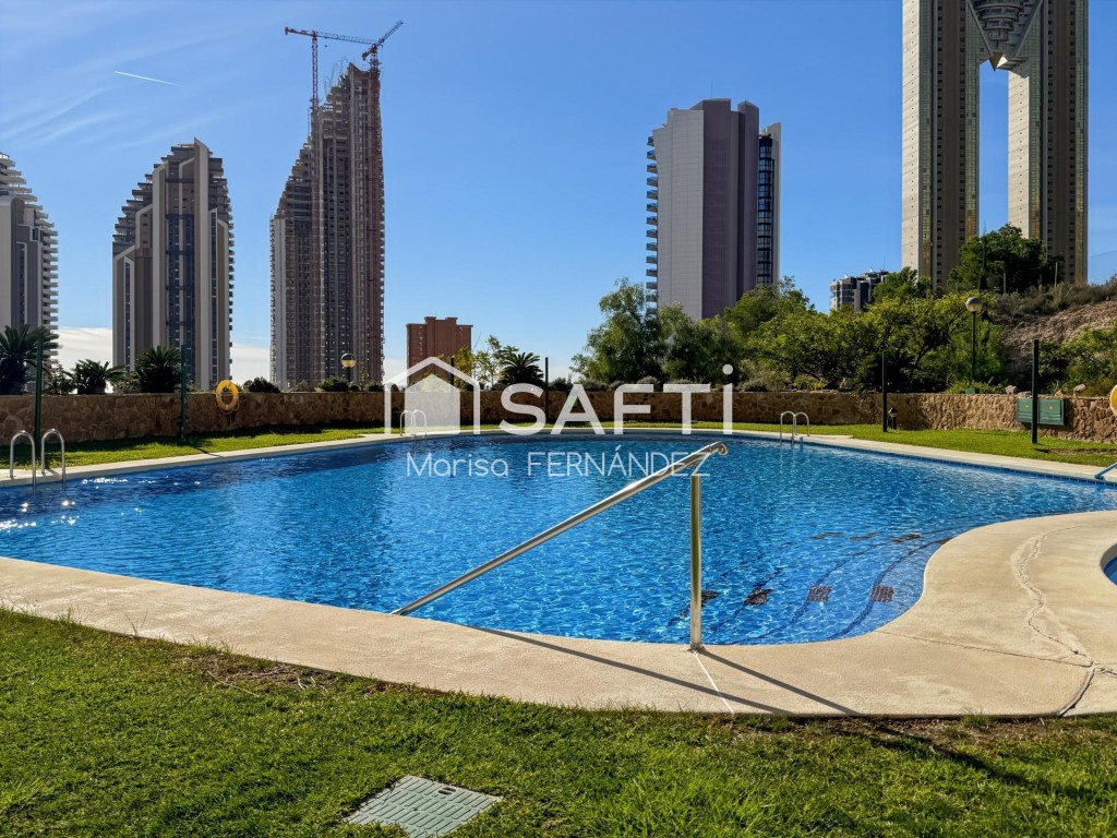 Te presentamos este exclusivo apartamento, (en venta con inquilinos hasta noviembre de 2027) y ubicado en la cotizada zona de Vía Parque, Benidorm. Con una superficie construida de 77 m² y magníficas vistas panorámicas, esta propiedad es ideal para quienes buscan calidad de vida y una oportunidad de inversión, ya que el inmueble se vende alquilado actualmente. ¡Además podrás explorar todas las posibilidades de mejora en esta propiedad gracias al proyecto de Home Staging con IA incluido en algunas de las fotos del anuncio!