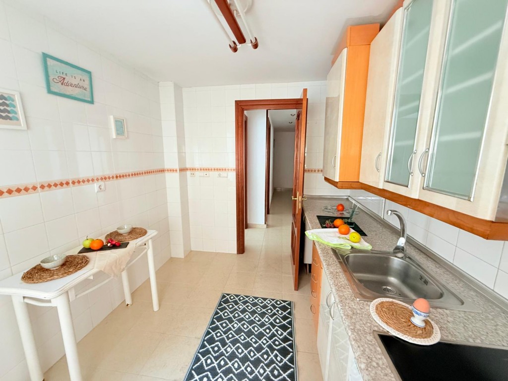 Salón amplio con dos ambientes diferenciados y acceso directo a la cocina.