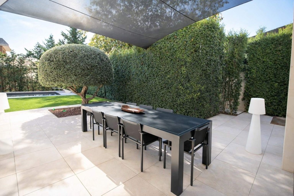 Fantástica casa de 625m2 con amplio jardín con piscina privada y máxima privacidad. Al acceder a la vivienda encontramos la amplia sala de estar con chimenea con acceso directo a jardín con piscina salinizada, gran cocina totalmente equipada con zona de office y comedor de verano, aseo de cortesía. En planta primera accedemos a zona de noche con 3 dormitorios con vestidor y baño privado y habitación de lavado y plancha. En planta segunda se accede a la zona del dormitorio principal con vistas, gran vestidor y baño completo con bañera, ducha, sauna y acceso a terraza con vistas. En planta -1 encontramos dormitorio con aseo con ducha, amplia sala de estar polivalente, garaje con capacidad para 4-5 coches. La vivienda fue construida en el año 2013 con alta calidad de acabados que entre ellos se encuentra riego automático, calefacción por suelo radiante, piscina salinizada, bomba de calor (frío /caliente) por conductos, ascensor, placas solares, aspiración centralizada, osmosis, .....Solicite visita privada