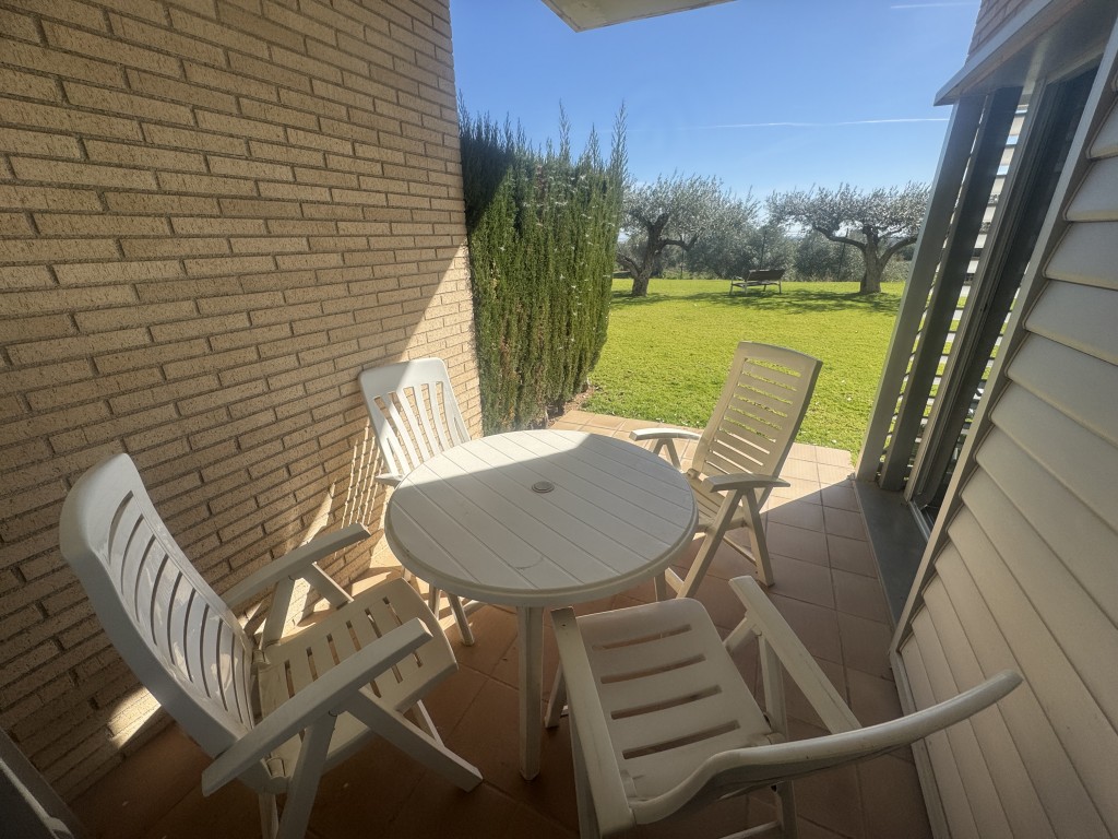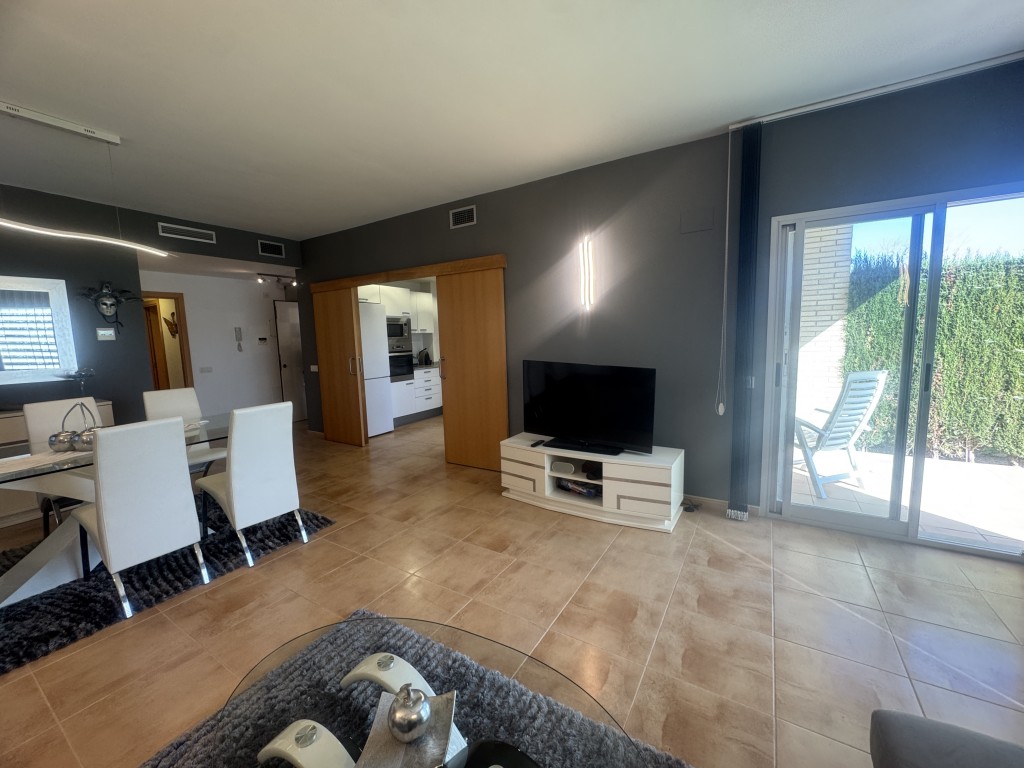 Planta baja de 91 m² construidos en venta en L' Ampolla (Tarragona), ubicada en urbanización residencial privada con jardín comunitario y piscina de baja densidad (10 vecinos: 6 casas y 4 apartamentos).