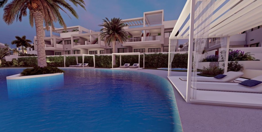 Descubre estos impresionantes apartamentos de obra nueva en planta baja o alta en el corazón de Torrevieja, que ofrecen la mezcla perfecta de comodidad moderna y encanto mediterráneo. Cada propiedad cuenta con 2 amplios dormitorios, 2 elegantes baños, cocina estilo americana, zona de estar y comedor de concepto abierto, lavandería, y ya sea un jardín o un solárium para disfrutar del aire libre. Este desarrollo está repleto de comodidades, que incluyen piscina comunitaria, zona de juegos para niños, aparcamiento subterráneo, jacuzzi y mucho más, lo que lo convierte en un lugar ideal tanto para relajarse como para divertirse.