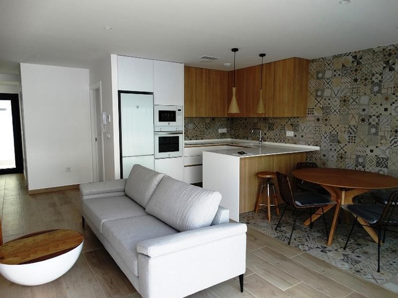 Cada vivienda dispone de tres dormitorios dobles con armarios empotrados, tres baños (uno en suite en el dormitorio principal), cocina moderna totalmente equipada con barra de desayuno y un luminoso salón-comedor de concepto abierto. Las puertas dan acceso a un jardín privado con piscina, zona pavimentada y aparcamiento en la parcela, además de un solárium en la azotea con acceso desde la primera planta.
