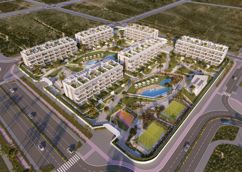 Viviendas de 2 y 3 dormitorios, todas con 2 baños completos y orientación sur/oeste, garantizando luz natural durante todo el día. Todas disfrutan de vistas a amplias zonas comunes tipo resort, que incluyen: