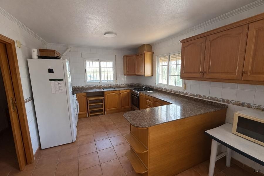 La cocina, totalmente equipada, es luminosa y espaciosa, con acceso directo al exterior y puertas correderas hacia el salón. Aire acondicionado en toda la vivienda para mayor confort durante todo el año.