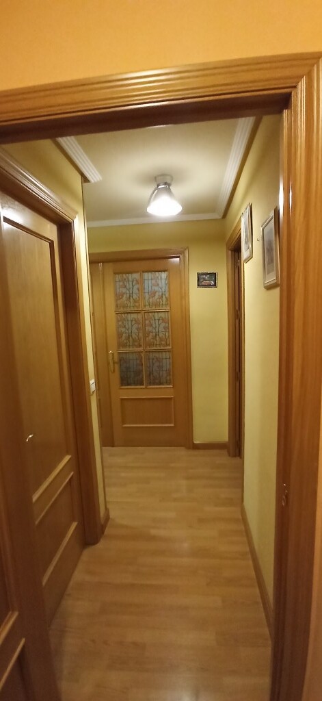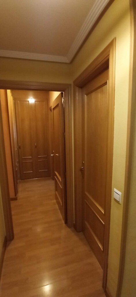El piso se distribuye en un amplio salón con balcón, aíre acondicionado y suelo de tarima.