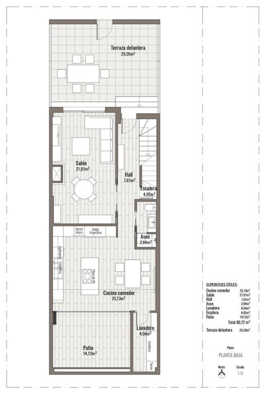 • Planta baja: 109 m2 incluyendo una terraza delantera ideal para actividades al aire libre o descanso.