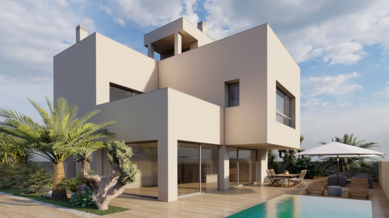 El exterior de la villa está diseñado para ofrecer el máximo disfrute del clima mediterráneo. La propiedad cuenta con una piscina privada, perfecta para refrescarse en los días calurosos o para disfrutar de una tarde relajante junto al agua. Además, dispone de un solárium, ideal para tomar el sol y disfrutar de las vistas panorámicas al mar. La terraza es otro de los espacios destacados, proporcionando un lugar perfecto para cenas al aire libre o para relajarse con un buen libro. El diseño exterior está pensado para ofrecer privacidad y confort, haciendo de esta villa un lugar perfecto para disfrutar de la vida al aire libre.