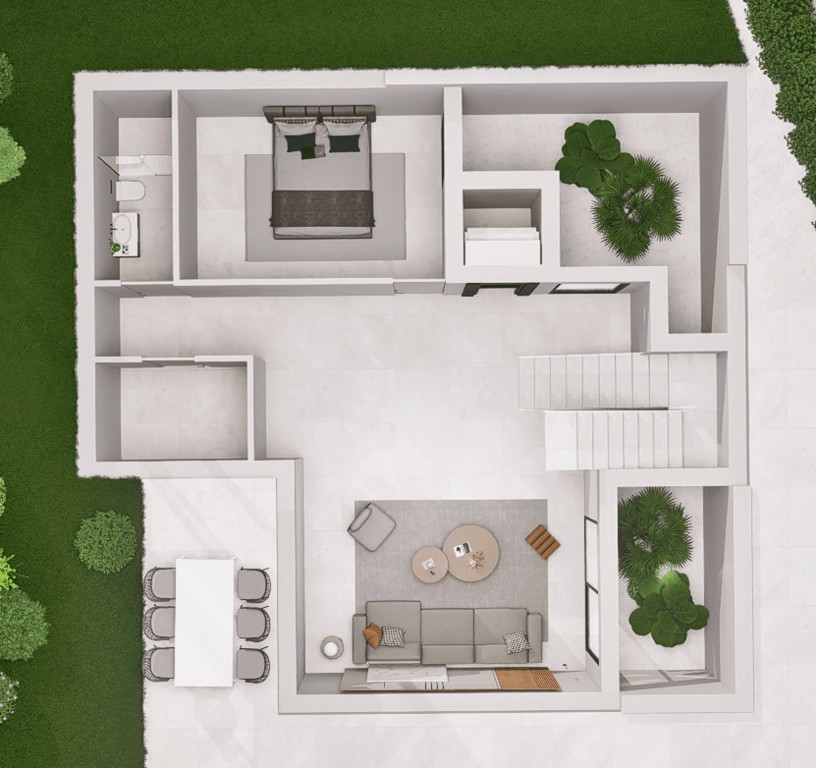 Los exteriores de estas viviendas en Finestrat están diseñados para ofrecer un estilo de vida al aire libre excepcional. Cada propiedad cuenta con un jardín privado, ideal para disfrutar de momentos de tranquilidad o para organizar reuniones al aire libre. La terraza es perfecta para relajarse mientras se contempla el horizonte. Además, cada vivienda dispone de un solárium, un espacio exclusivo para disfrutar del sol en total privacidad. La presencia de una piscina privada añade un toque de lujo, permitiendo refrescarse en los días más calurosos. El jardín y la piscina se integran armoniosamente con el entorno, creando un oasis personal.