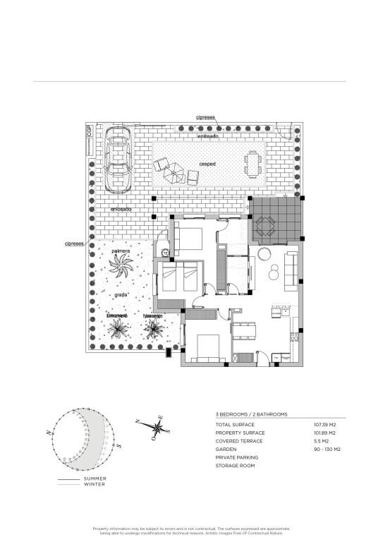 El interior de las propiedades en este residencial de Rojales está diseñado para ofrecer el máximo confort y funcionalidad. Con opciones de 2 o 3 dormitorios y 2 o 3 baños, cada vivienda está pensada para adaptarse a las necesidades de sus residentes. Los espacios interiores son amplios y luminosos, con un diseño que maximiza la entrada de luz natural y crea un ambiente acogedor. La distribución incluye un garaje privado, asegurando comodidad y seguridad para los vehículos de los residentes. Además, la presencia de un solárium en cada propiedad ofrece un espacio adicional para el relax o el entretenimiento, permitiendo disfrutar del clima mediterráneo durante todo el año. Los acabados de alta calidad y los detalles cuidadosamente seleccionados reflejan un estilo de vida sofisticado y moderno, haciendo de cada vivienda un lugar ideal para vivir.