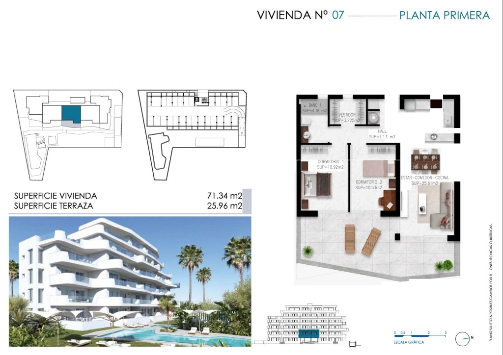 Ubicado en la encantadora Torre de la Horadada, este conjunto residencial ofrece una experiencia de vida única en la costa. Con un total de 24 propiedades, los residentes pueden elegir entre apartamentos, plantas bajas y áticos, todos diseñados para maximizar el confort y la funcionalidad. La proximidad al mar, a solo 250 metros, garantiza vistas espectaculares y un ambiente relajante. Además, la ubicación estratégica permite un acceso fácil al aeropuerto, situado a 47.7 kilómetros, facilitando los desplazamientos internacionales. Las propiedades están equipadas con características modernas como suelos de gres porcelánico, videoportero, persianas eléctricas y electrodomésticos, asegurando un estilo de vida contemporáneo y cómodo. El aire acondicionado integrado proporciona un ambiente agradable durante todo el año, adaptándose a las necesidades climáticas de la región.