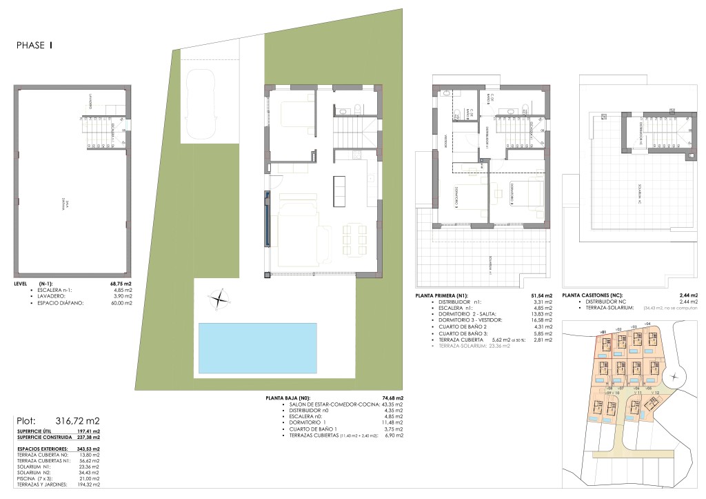 Los exteriores de estas propiedades en San Miguel de Salinas están pensados para ofrecer un espacio de relajación y disfrute al aire libre. Cada vivienda cuenta con una terraza, ideal para disfrutar de las vistas al mar y del clima mediterráneo. Además, se ofrece la opción de un solárium, perfecto para aquellos que desean un espacio adicional para tomar el sol o disfrutar de las noches estrelladas. El diseño exterior se complementa con la posibilidad de un garaje, proporcionando comodidad y seguridad para los vehículos de los residentes.