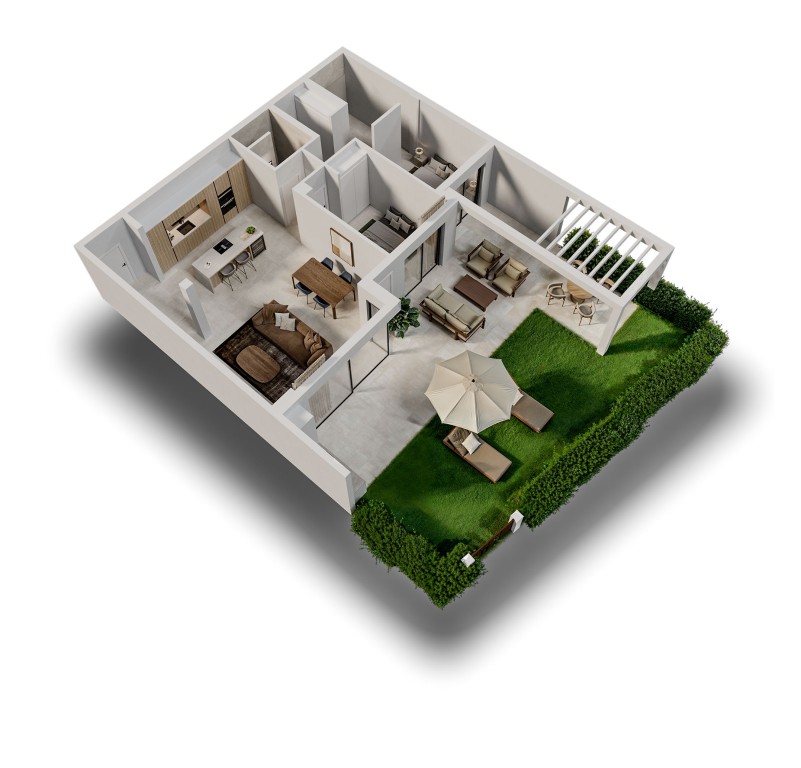 Las propiedades de este residencial en La Sella están diseñadas para disfrutar al máximo del entorno natural y las vistas al mar. Cada vivienda cuenta con una terraza privada, perfecta para relajarse al aire libre y disfrutar del clima mediterráneo. Además, algunas tipologías incluyen un jardín privado, proporcionando un espacio adicional para el ocio y la recreación. La presencia de pérgolas añade un toque de elegancia y funcionalidad, permitiendo disfrutar de las áreas exteriores con sombra y protección. La integración de estos elementos exteriores asegura que los residentes puedan disfrutar de un estilo de vida al aire libre durante todo el año.