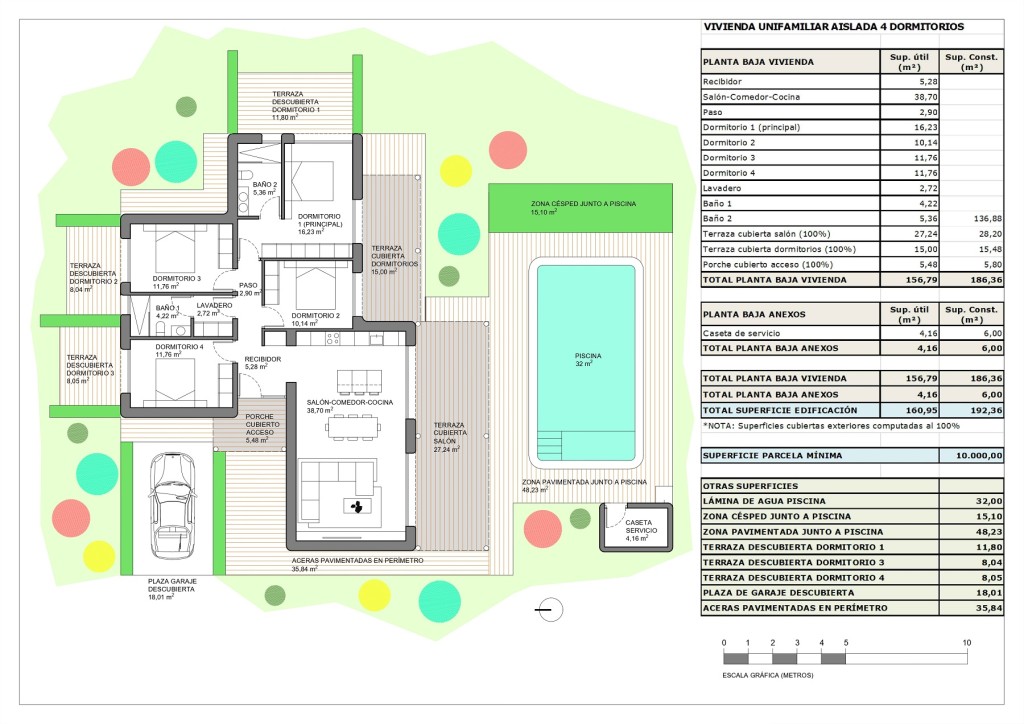 El diseño exterior de estas viviendas independientes en Aspe destaca por su integración con el entorno natural. Cada propiedad cuenta con un jardín privado, perfecto para disfrutar del aire libre y del clima mediterráneo. Las terrazas amplias ofrecen un espacio adicional para el ocio y el relax, ideales para reuniones familiares o simplemente para disfrutar de un momento de tranquilidad. Además, cada vivienda dispone de una piscina privada, proporcionando un oasis personal para refrescarse durante los cálidos días de verano. La presencia de una pérgola añade un toque de elegancia y funcionalidad, permitiendo disfrutar del exterior en cualquier momento del día.