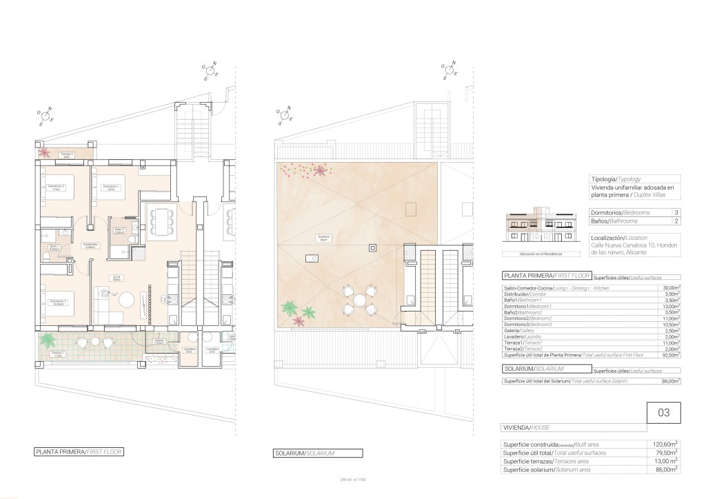 Los exteriores de estas propiedades están diseñados para maximizar el disfrute del clima mediterráneo. Cada bungalow cuenta con una terraza privada, ideal para disfrutar de momentos al aire libre, ya sea para relajarse o para socializar con amigos y familiares. Además, el solárium ofrece un espacio adicional para tomar el sol o simplemente disfrutar de las vistas panorámicas del entorno. La arquitectura de los bungalows se integra armoniosamente con el paisaje, ofreciendo un equilibrio perfecto entre diseño y naturaleza.