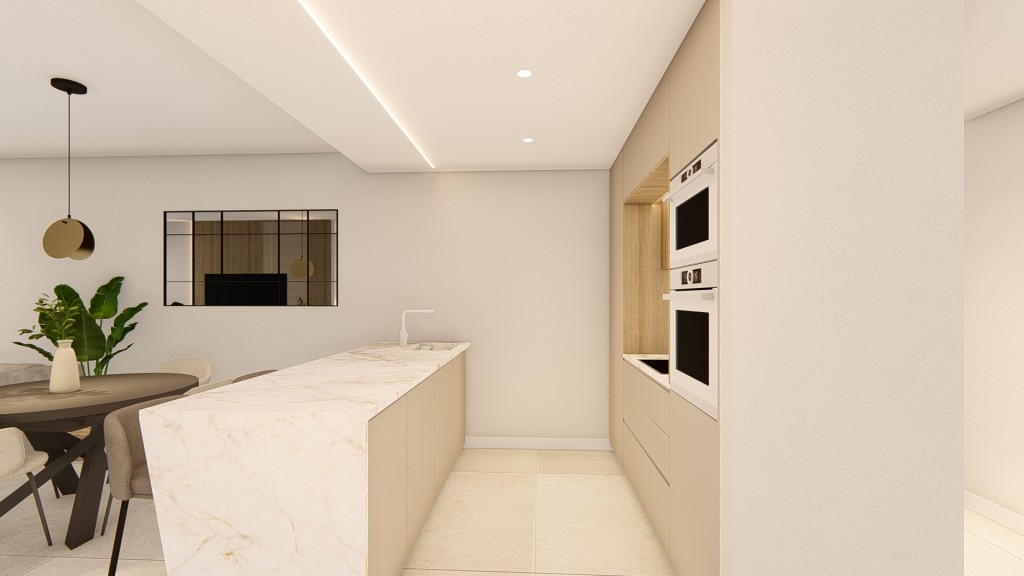 El interior de las viviendas está diseñado con un enfoque en la funcionalidad y el confort. Los suelos de gres porcelánico aportan un toque de elegancia y son fáciles de mantener. Las viviendas están equipadas con aire acondicionado, garantizando un ambiente agradable durante todo el año. Las persianas eléctricas y el videoportero añaden un nivel extra de comodidad y seguridad. La cocina, equipada con electrodomésticos modernos, se integra perfectamente en el espacio, facilitando la vida diaria. Los armarios empotrados en los dormitorios ofrecen un almacenamiento eficiente y ordenado.
